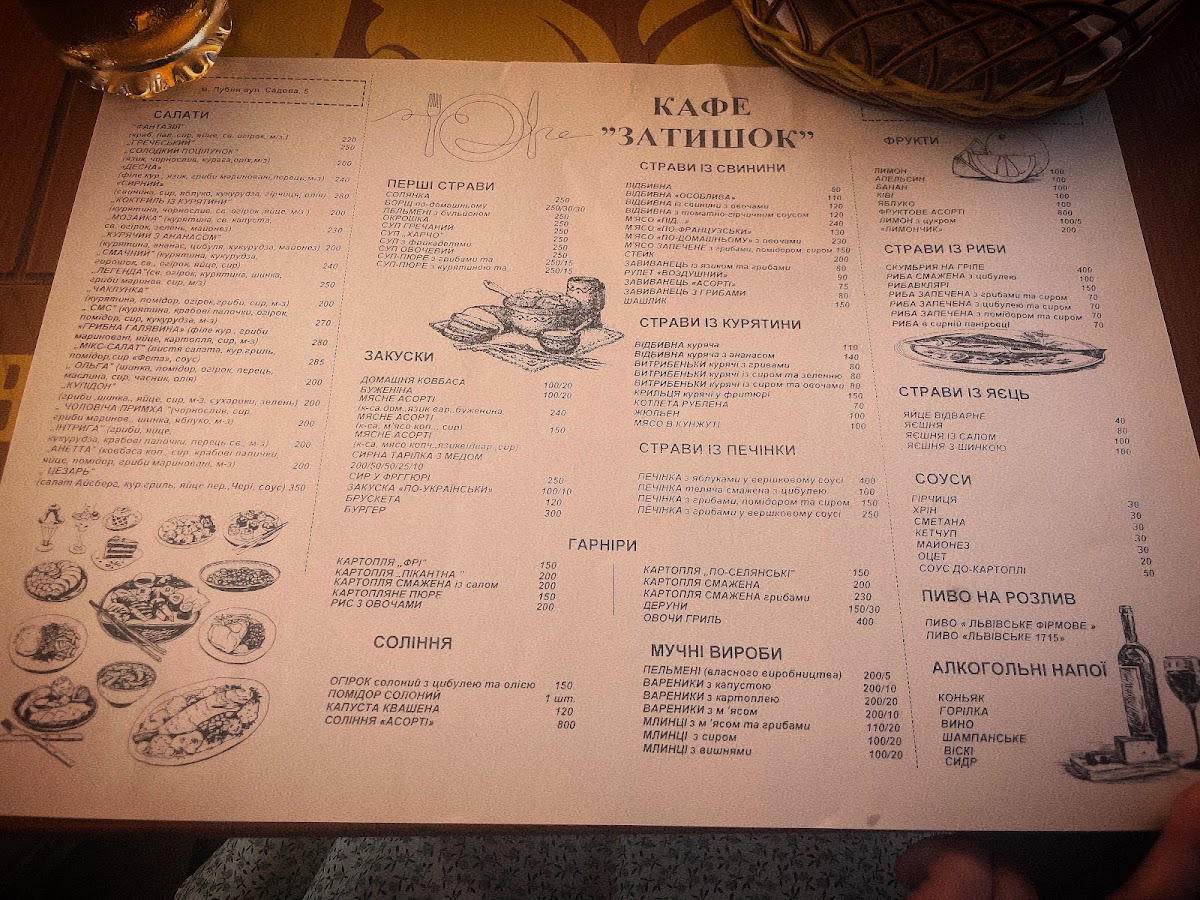 Welcome to Zatyshok, a charming café nestled in the heart of Lubny on Sadova Street. This delightful spot is a true sanctuary for food lovers and those seeking a moment of relaxation amidst the hustle and bustle of daily life. Zatyshok offers a blend of appetizing dishes, warm ambiance, and friendly service, making it an ideal destination for any occasion.